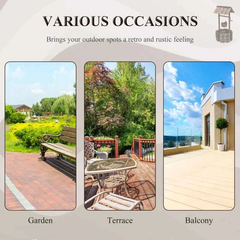 Outsunny Wishing Well Planter Bucket – Brown – 844-130