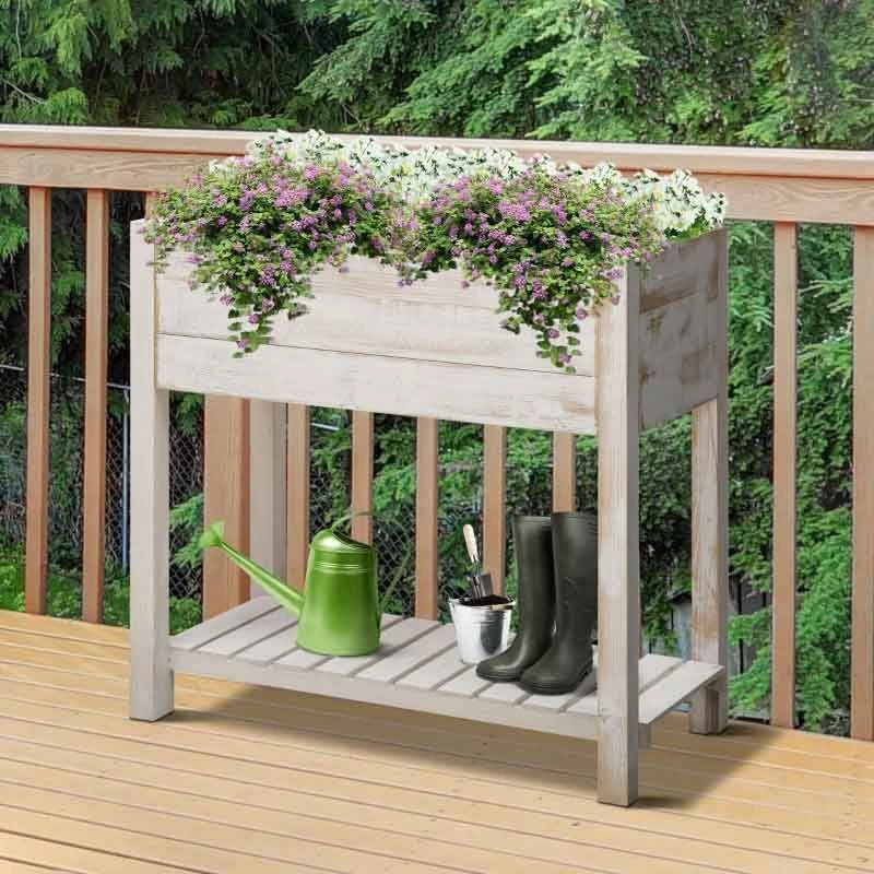 The Outsunny Wooden 4 Pocket Garden Planter enables you to cultivate plants, making it more convenient to manage and take care of them, in your patio, yard, garden, greenhouse, or anywhere you’d like to grow vegetables, herbs, or flowers. The 2 tiers can be used for planting and storing and you can cultivate plants on the top.
