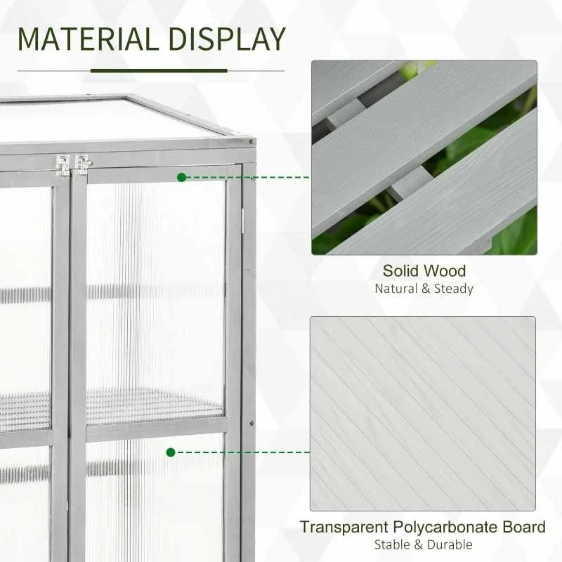 Outsunny Wooden Cold Frame Greenhouse with Adjustable Shelf 110H x 76L x 46.5Wcm – Grey – 845-371