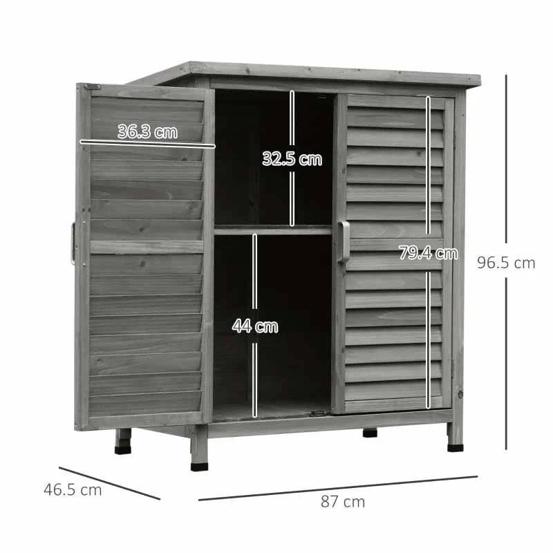 Outsunny Wooden Garden Storage Shed with 2 Doors 87L x 46.5W x 96.5Hcm – Grey – 845-248GY