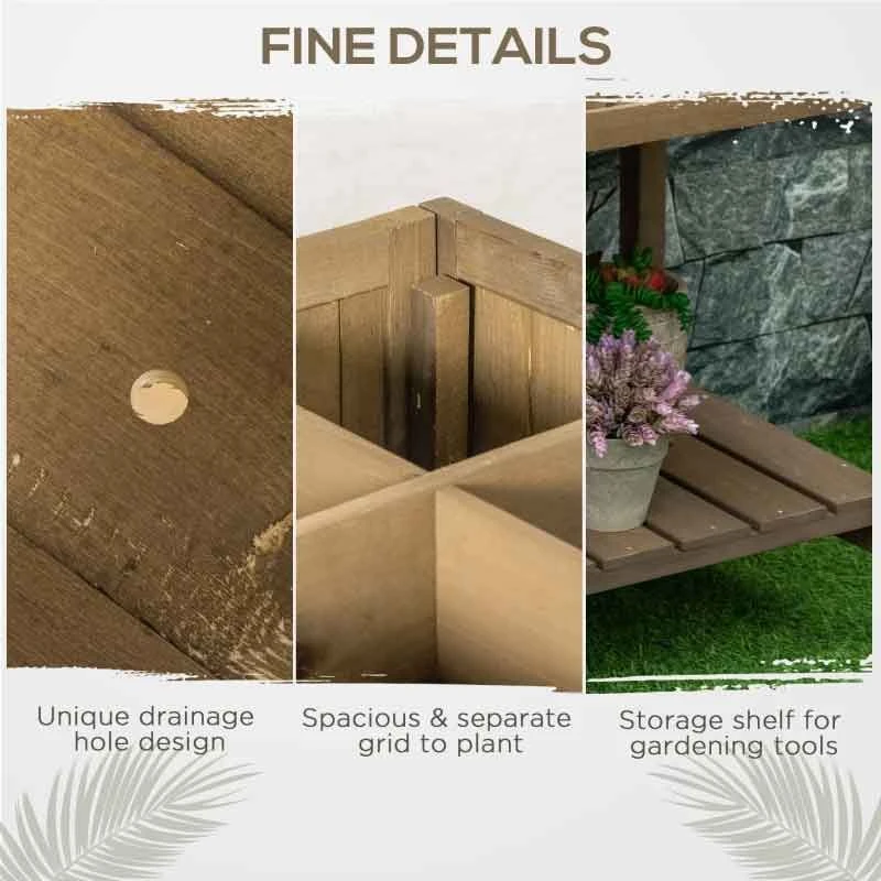 Outsunny Wooden Raised Garden Planter Stand – Brown – 845-238V01BN