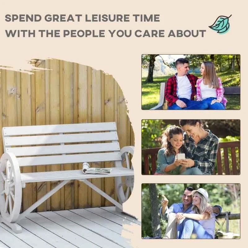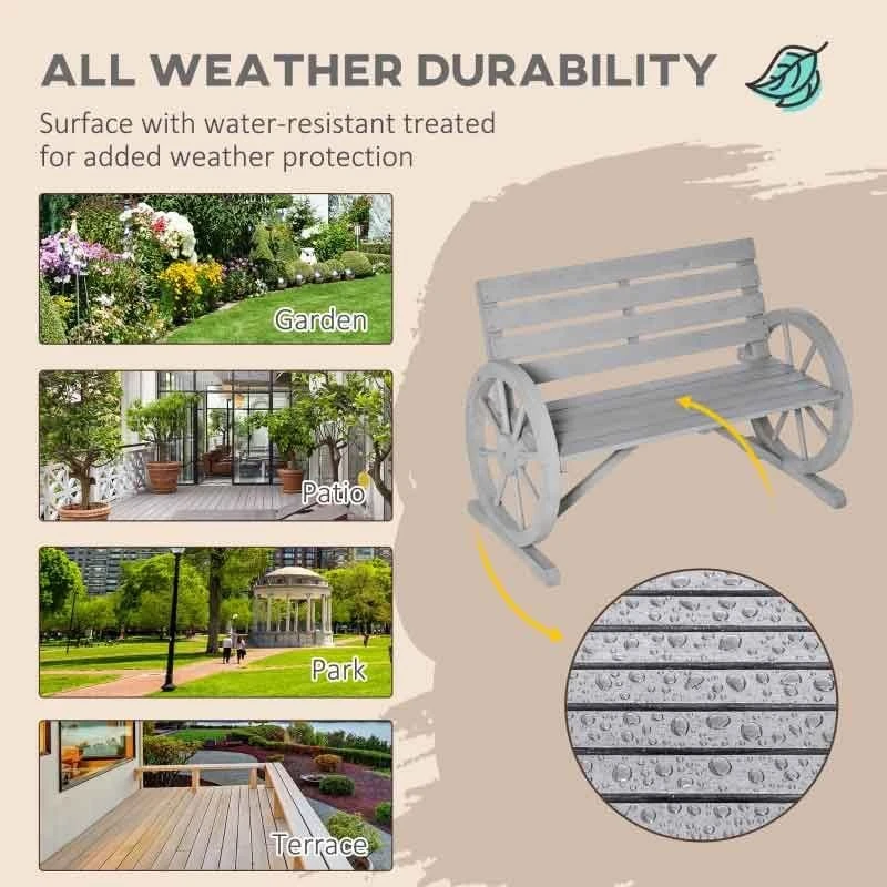Outsunny Wooden Wagon Wheel 2-Seater Garden Bench-Grey-84B-183CG