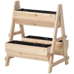 Outsunny Raised Garden Planter With Self-Watering Design – Set Of 2 – Brown – 845-555