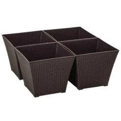 Outsunny Raised Garden Planter With Self-Watering Design – Set Of 4 – Brown – 845-557