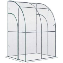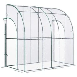 Outsunny Walk-In Lean To Greenhouse With Windows & Zippered Doors – Green – 845-302V01GN