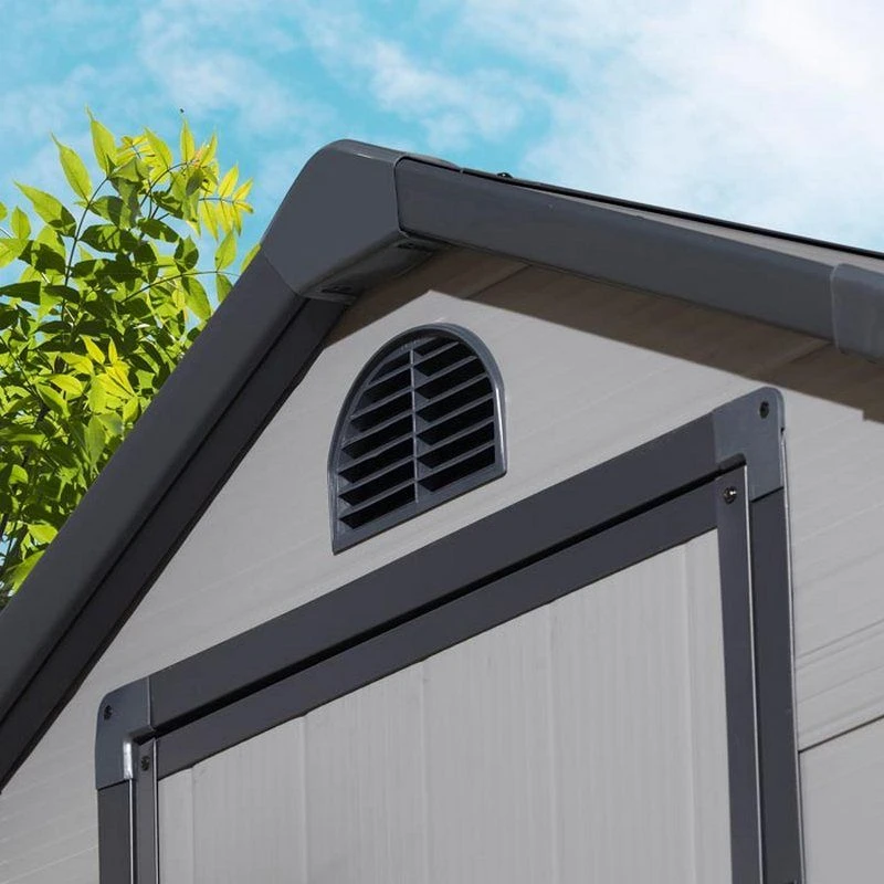 Add a stylish garden shed to any garden or outdoor space whatever the shape or size your area is with the addition of Rowlinson’s Airevale Plastic Apex Shed. With a light grey finish, the 4×3 shed is a quality addition for many outdoor areas helping in many whether you need to store tools, gardening equipment or childrens outdoor toys. The Rowlinson Airevale Plastic Apex Shed includes many features creating an alternative to a traditional timber shed, with lockable doors, gable vents for air circulation, a side window amd UV protected polypropylene construction.