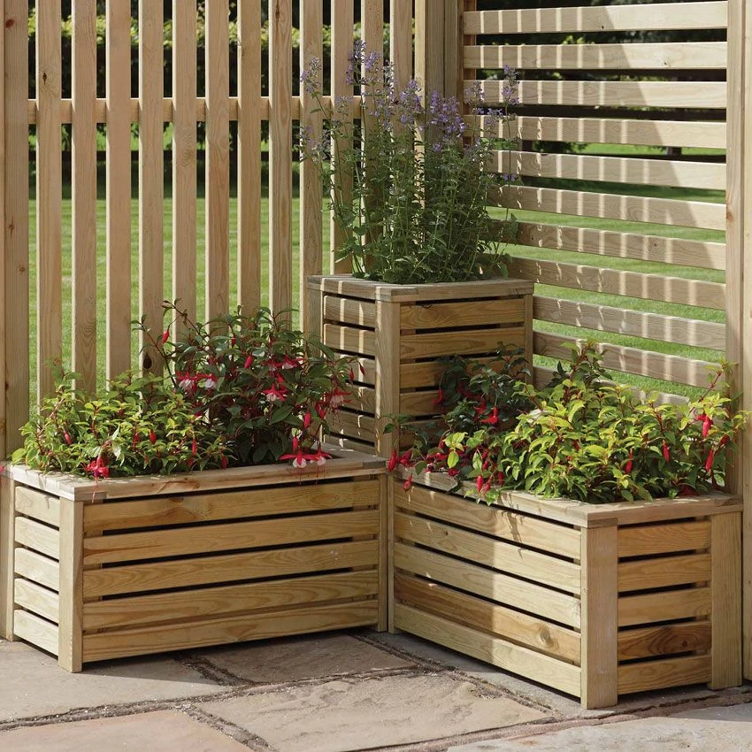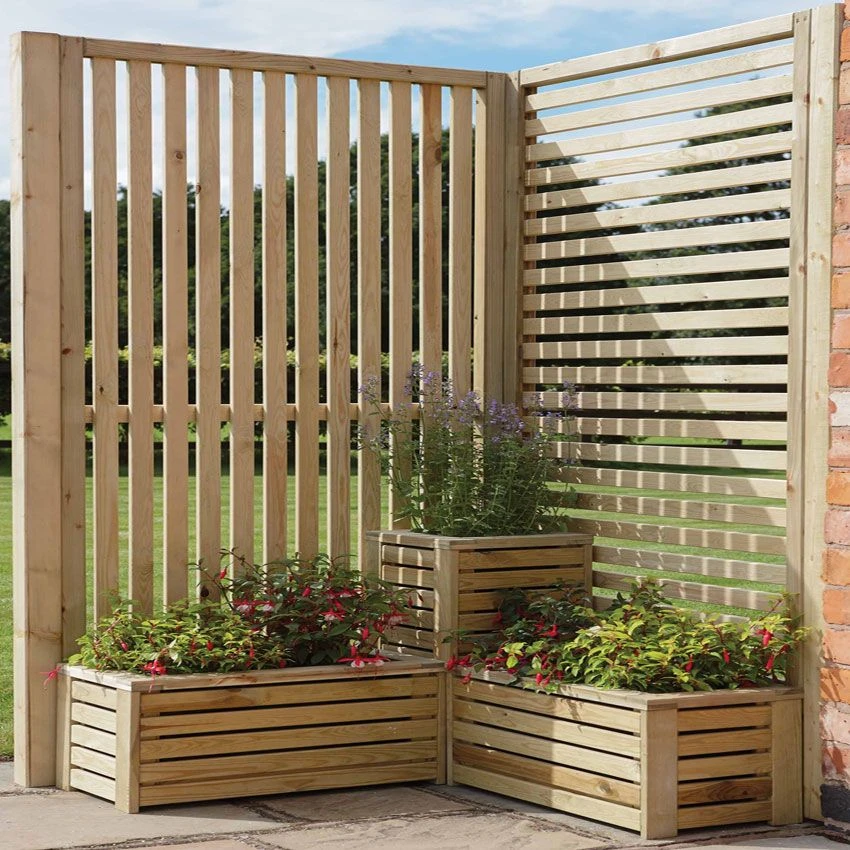 The Garden Creations Corner Set by Rowlinson can really enhance any garden or patio spaces. Suitable for both small and large gardens, screens can be used as a partition to close off certain areas of the garden, whilst still giving the illusion of a larger space. Featuring two screens, one with horizontal slats and one with vertical slats, the contemporary corner set lets natural light flow through whilst the pre-assembled planters add a decorative touch, allowing plants to climb up the screens to create a vertical garden. With a pressure treated finish, the Garden Creations Corner Set is protected against rot and makes a great addition to any garden.