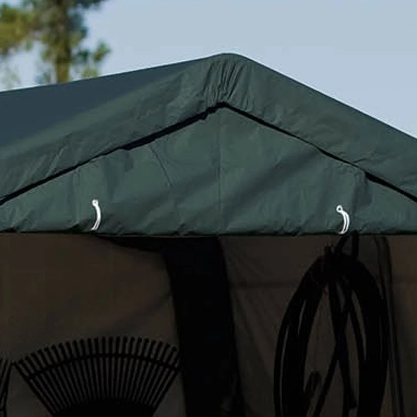 So whether you need to protect the wood pile from the elements, your prized motorcycle from the summer rain or you would like extra storage for your garden tools, this ShelterLogic shed in a box covers every base.