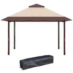 Outsunny 2 Tier Pop-Up Garden Gazebo With Carry Bag 4000x4000mm – Coffee- 84C-229V01CF