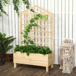 Outsunny Garden Planters With Trellis – Natural – 845-883V01ND