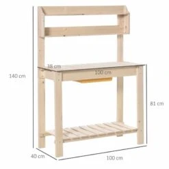 Outsunny Garden Wooden Potting Bench With Sliding Tabletop & Dry Sink – Brown – 845-376