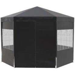 Outsunny Hexagon Gazebo With Windows 3400x4000mm – Black – 84C-196BK